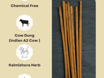 Embark on a journey of spiritual purity with our 100% natural incense cones, skilfully crafted from Indian cow dung and bilona ghee, untouched by artificial chemicals. Carefully sourced from nurtured cows, each cone is imbued with the essence of Kalmishora herb, creating a tranquil ambiance and embracing the healing wonders of nature’s abundance.
