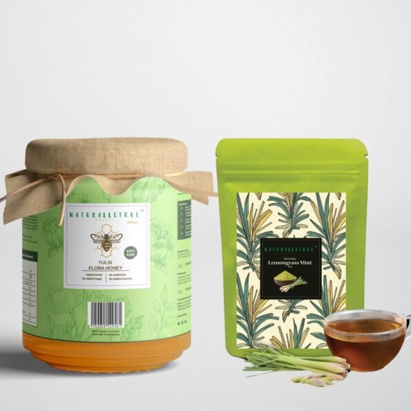 NaturalleTrue Lemongrass Mint Tea & Tulsi Honey Combo – 75g Herbal Tea + 250g Pure Tulsi Honey