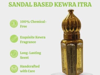 NaturalleTrue Pure Sandal Based Kewra Itra is a refined blend of natural kewra essence harmonized with a rich sandalwood base. This itra is completely free from harmful chemicals, offering a pure and authentic fragrance experience. The unique combination of kewra’s fresh, floral notes and sandalwood’s warm, woody undertones creates an enchanting scent that is both invigorating and soothing. Ideal for those who appreciate natural, long-lasting fragrances.